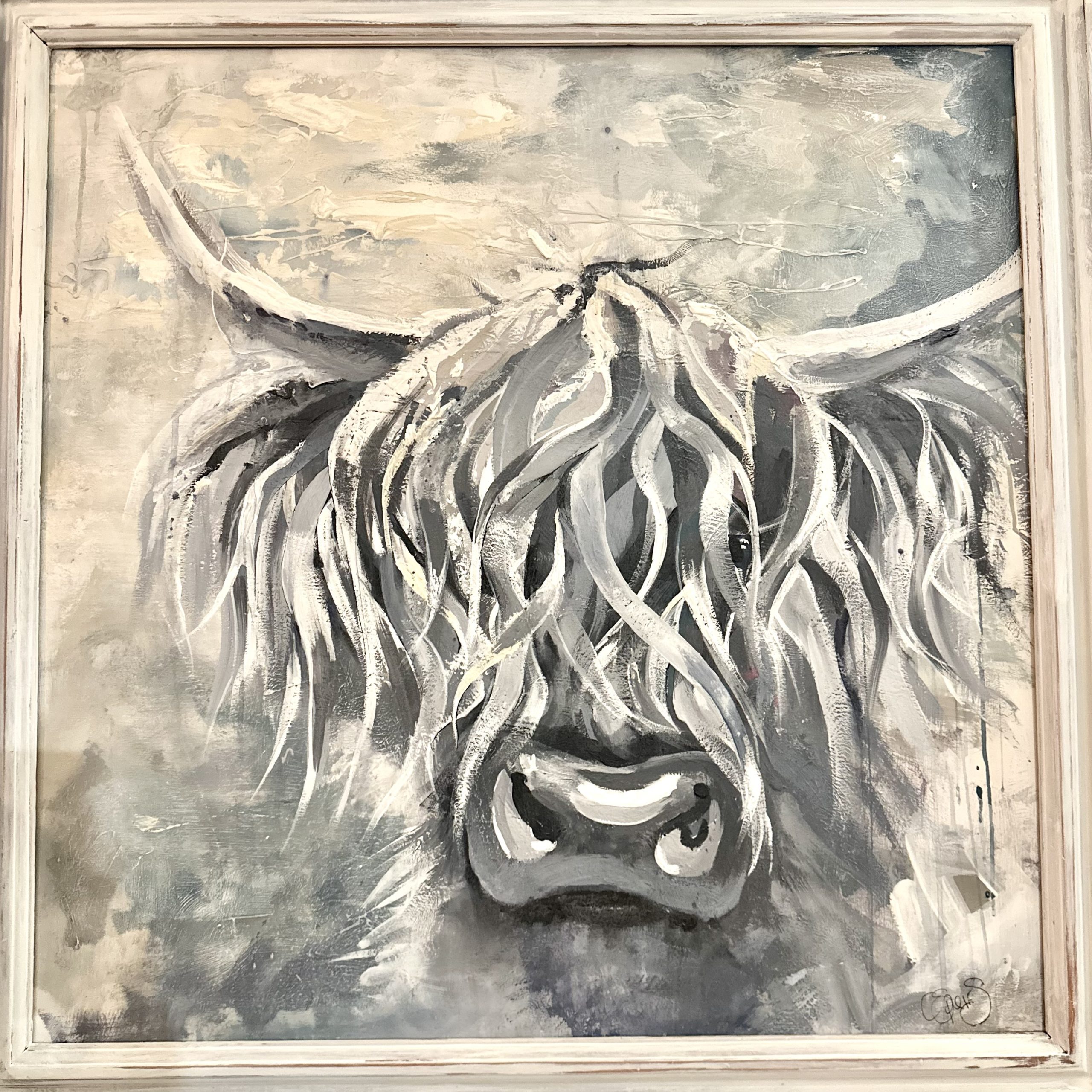Meet Charlie, a bold and brilliant Highland coo painted with layers of chalk paint, acrylics and mixed media. This one-off original is full of personality and proudly Scottish.